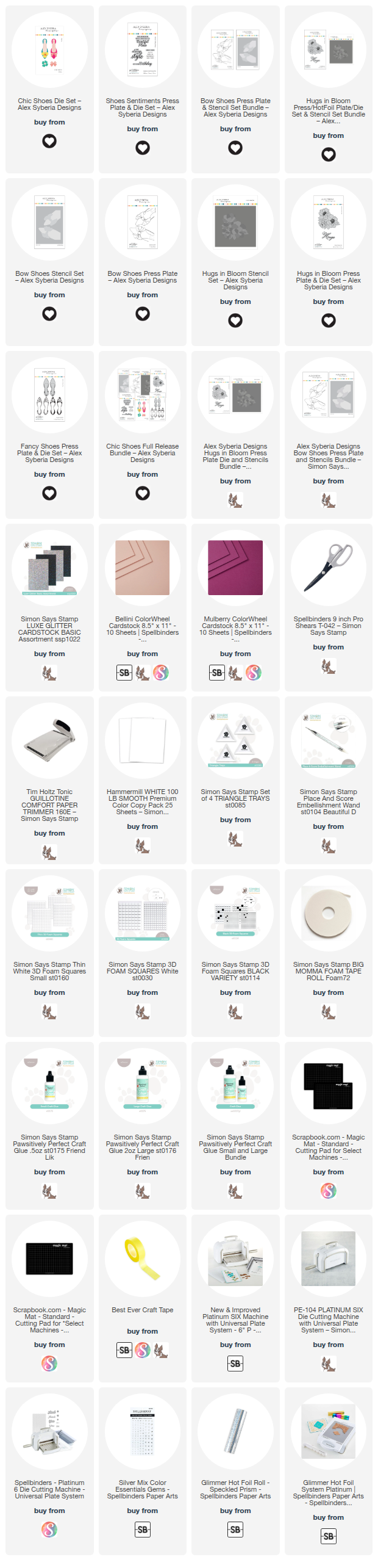 I’m excited to be joining the Alex Syberia Designs March Release and Giveaway Blog Hop today! This release is such a fun and unique one—stylish shoes! Alex has designed gorgeous die cut and BetterPress shoe designs, along with a beautiful new floral image with a coordinating stencil that makes coloring quick and easy.