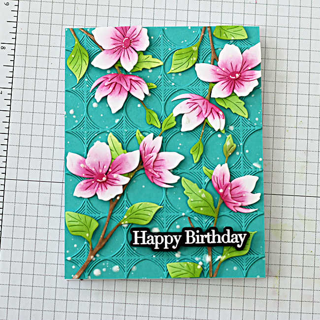 I hope today’s elegant blossom branch card inspires you to create your own beautiful die cut spring card. This design is perfect for so many occasions, and I love how the soft ink blending and textured background come together for a fresh, seasonal look. IF you give this card a try, I’d love to see what you create – be sure to share and tag me so I can admire your work!