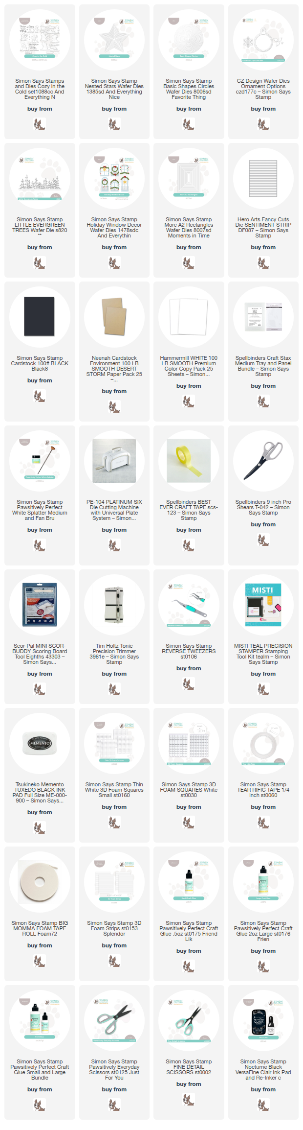 Clicking on a thumbnail link and shopping provides me with a small commission (at no additional cost to you), which supports my website and allows me to continue bringing you new projects and videos. I appreciate your support. Affiliate and product disclosures are found on my disclosure page. All products were personally purchased except for Simon Says Stamp And Everything Nice Release Products, which were provided/sponsored by the company. I only use and recommend products I love. Click on the icons below each product picture to visit my favorite stores.
