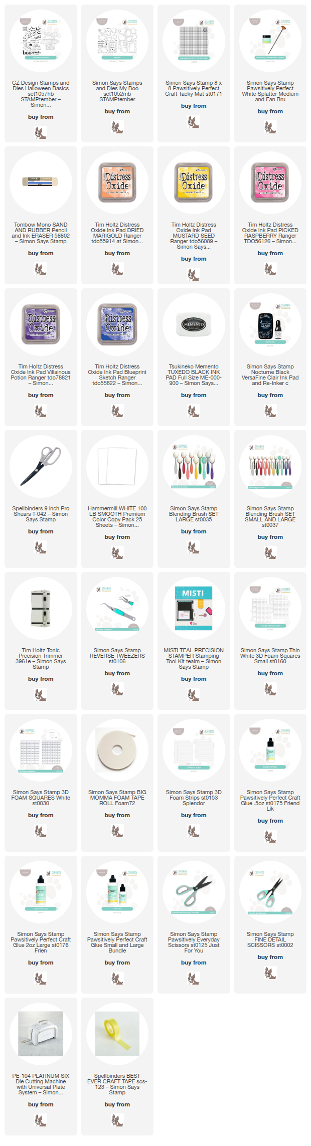 Clicking on a thumbnail link and shopping provides me with a small commission (at no additional cost to you), which supports my website and allows me to continue bringing you new projects and videos. I appreciate your support. Affiliate and product disclosures are found on my disclosure page. All products were personally purchased except for Simon Says Stamp STAMPtember® release products, which were provided/sponsored by the company. I only use and recommend products I love. Click on the icons below each product picture to visit my favorite stores.