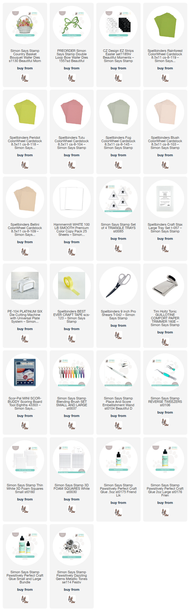 Clicking on a thumbnail link and shopping provides me with a small commission (at no additional cost to you), which supports my website and allows me to continue bringing you new projects and videos. I appreciate your support. Affiliate and product disclosures are found on my disclosure page. All products were personally purchased except for Simon Says Stamp Beautiful Moments release products, which were provided/sponsored by the company. Click on the icons below each product picture to visit my favorite stores.