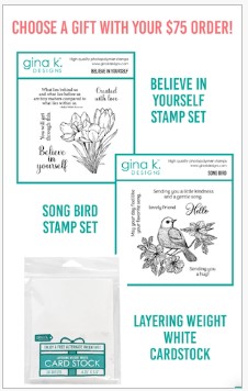 Place a $75.+ order with Gina K Designs and chose a free gift from