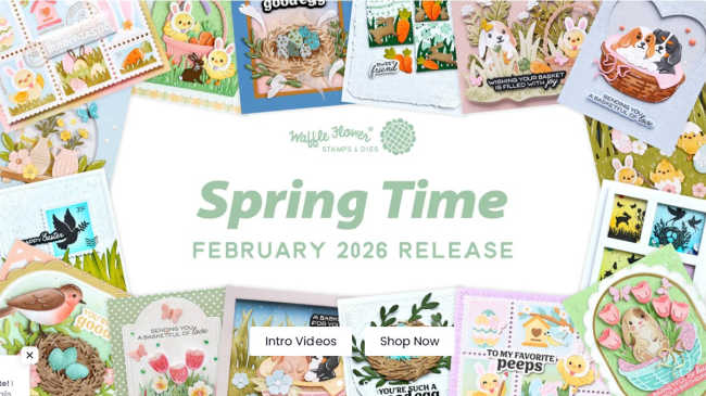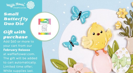 Waffle Flower February Release – FREE GIFT WITH A $60. purchase.
