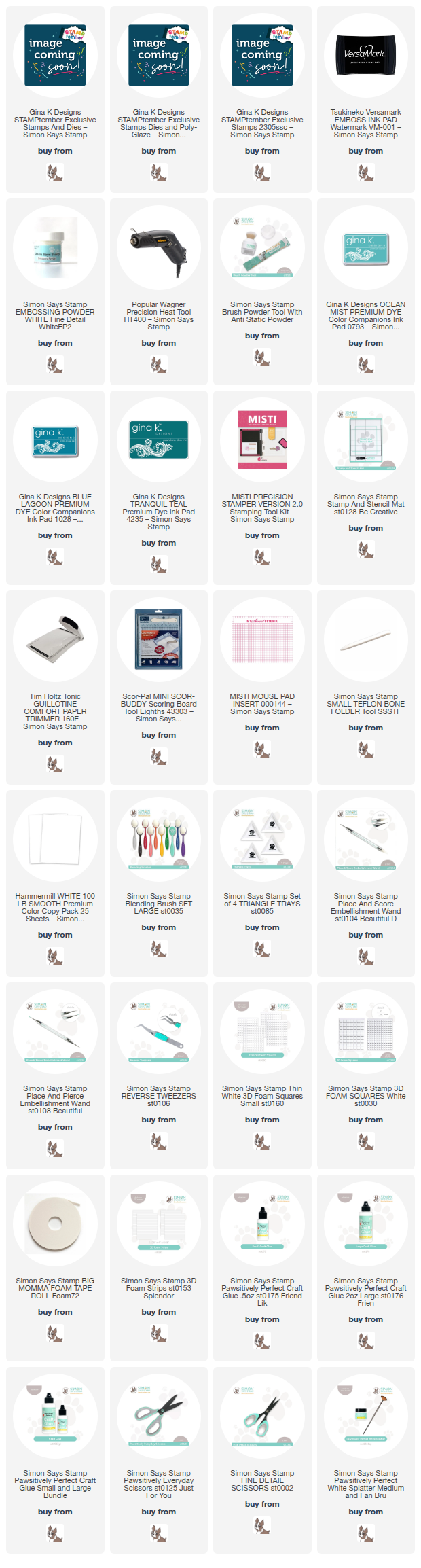 Clicking on a thumbnail link and shopping provides me with a small commission (at no additional cost to you), which supports my website and allows me to continue bringing you new projects and videos. I appreciate your support. Affiliate and product disclosures are found on my disclosure page. All products were personally purchased except for Simon Says Stamp STAMPtember® Collaboration sets, which were provided/sponsored by the company. I only use and recommend products I love. Click on the icons below each product picture to visit my favorite stores.