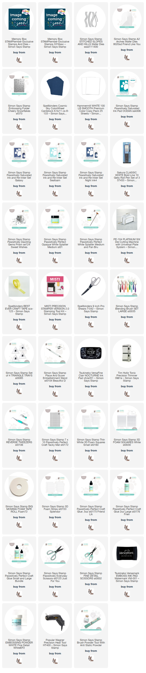 Clicking on a thumbnail link and shopping provides me with a small commission (at no additional cost to you), which supports my website and allows me to continue bringing you new projects and videos. I appreciate your support. Affiliate and product disclosures are found on my disclosure page. All products were personally purchased except for Simon Says Stamp STAMPtember® Collaboration stamp sets, which were provided/sponsored by the company. I only use and recommend products I love. Click on the icons below each product picture to visit my favorite stores.