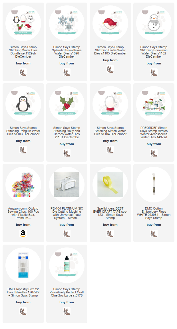 Clicking on a thumbnail link and shopping provides me with a small commission (at no additional cost to you), which supports my website and allows me to continue bringing you new projects and videos. I appreciate your support. Affiliate and product disclosures are found on my disclosure page. All products were personally purchased except for the Simon Says Stamp Stitched Dies, which were provided/sponsored by the company. I only use and recommend products I love. Click on the icons below each product picture to visit my favorite stores.