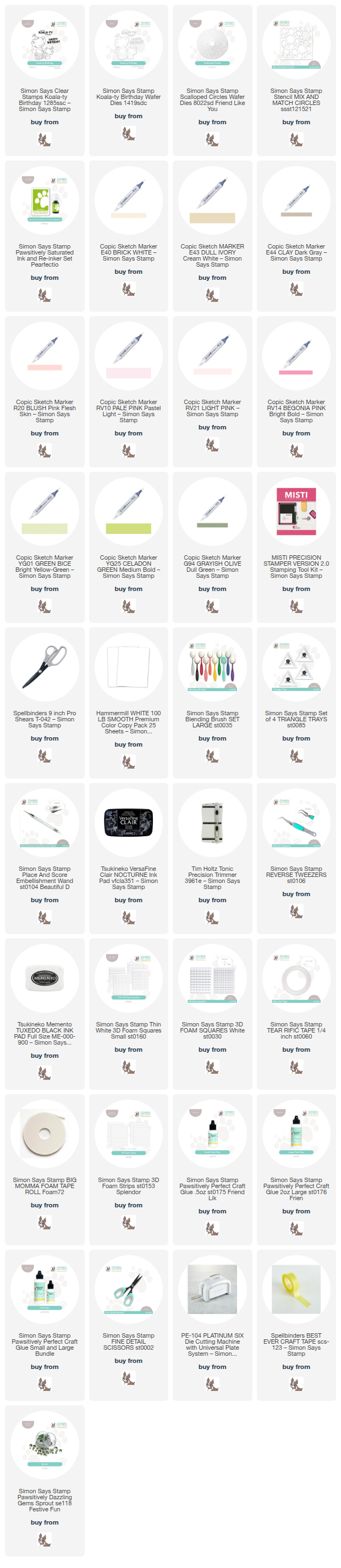 Products used to create the Simon Says Stamp Koala-Ty Birthday Card: