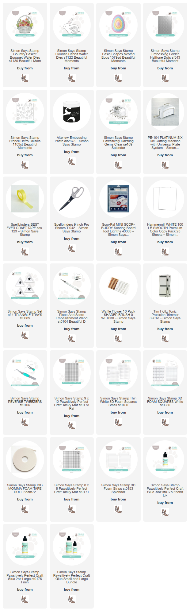 Clicking on a thumbnail link and shopping provides me with a small commission (at no additional cost to you), which supports my website and allows me to continue bringing you new projects and videos. I appreciate your support. Affiliate and product disclosures are found on my disclosure page. All products were personally purchased except for the Simon Says Stamp Beautiful Moments Products, which were provided/sponsored by the company. Click on the icons below each product picture to visit my favorite stores.