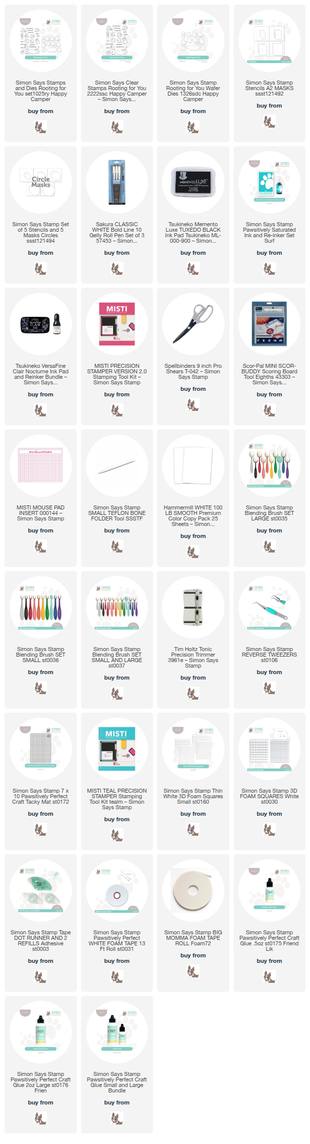 Clicking on a thumbnail link and shopping provides me with a small commission (at no additional cost to you), which supports my website and allows me to continue bringing you new projects and videos. I appreciate your support. Affiliate and product disclosures are found on my disclosure page. All products were personally purchased except for Simon Says Stamp Happy Camper Release products, which were provided/sponsored by the company. I only use and recommend products I love. Click on the icons below each product picture to visit my favorite stores.