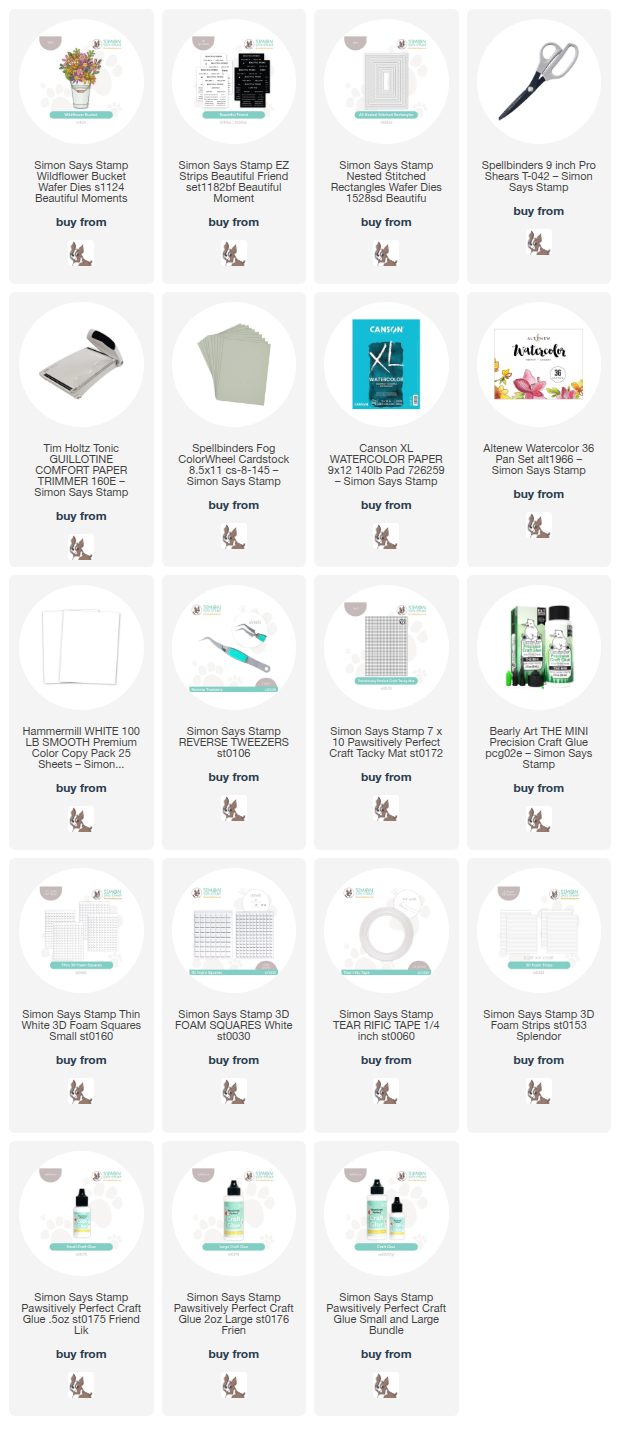Products used for the Simon Says Stamp Watercolor Wildflower Bucket Card