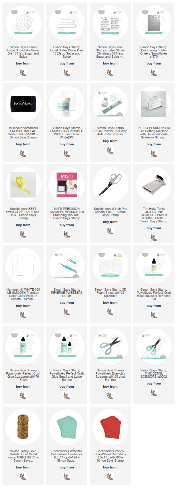 Clicking on a thumbnail link and shopping provides me with a small commission (at no additional cost to you), which supports my website and allows me to continue bringing you new projects and videos. I appreciate your support. Affiliate and product disclosures are found on my disclosure page. All products were personally purchased except for Spellbinders Monthly Club Kits, which were provided/sponsored by the company. I only use and recommend products I love. Click on the icons below each product picture to visit my favorite stores.