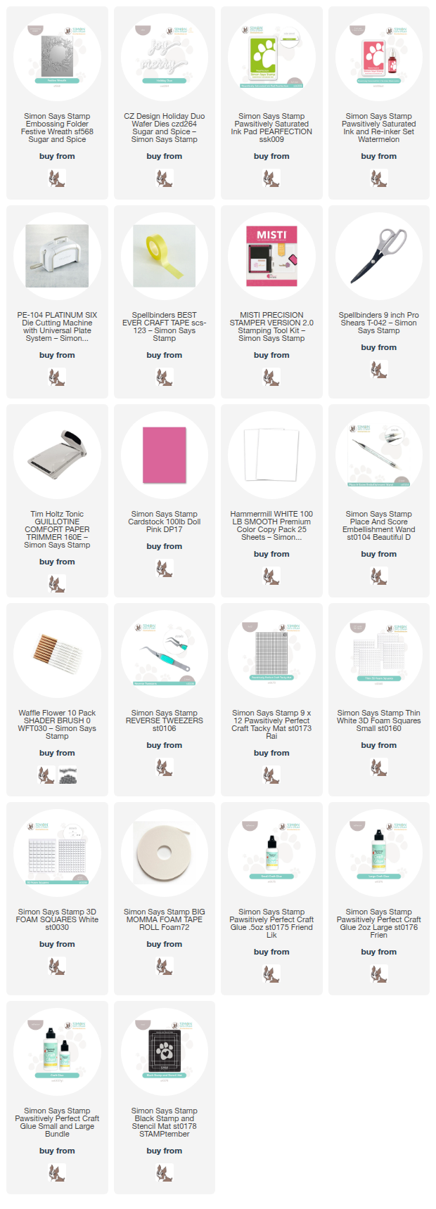 Card Making Supplies used for the Simon Says Stamp Simply Elegant Festive wreath Christmas Card: