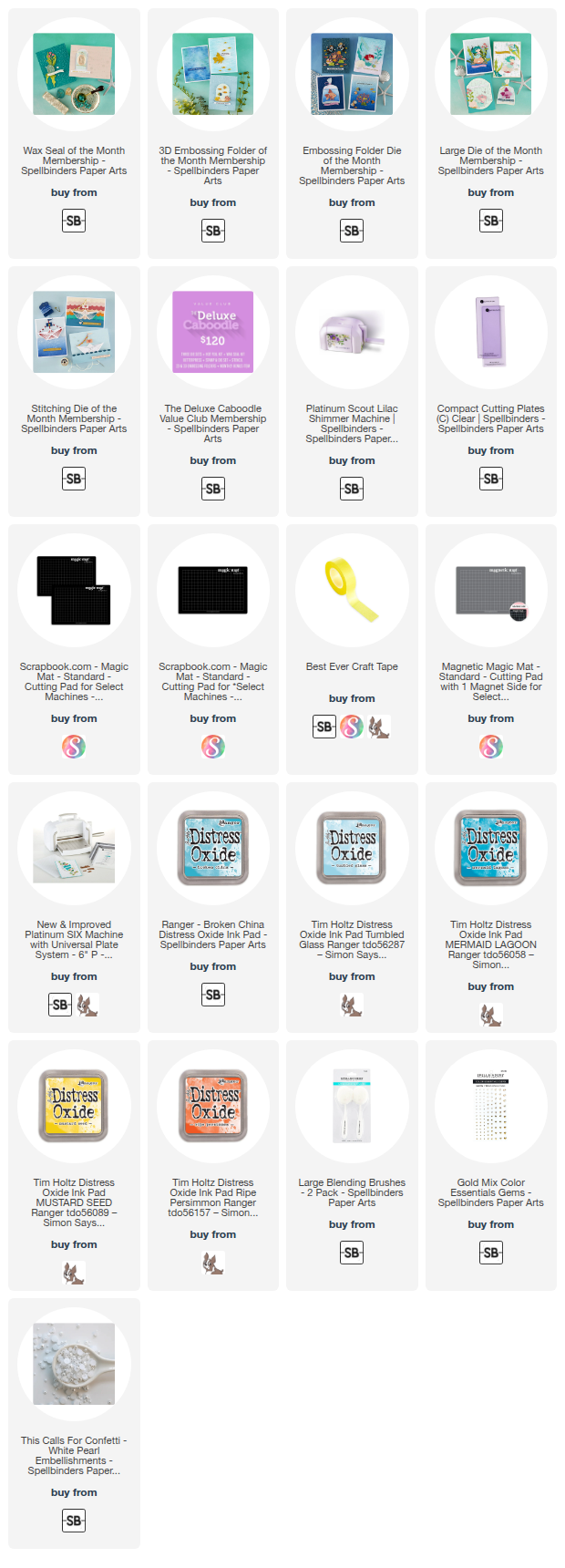 Clicking on a thumbnail link and shopping provides me with a small commission (at no additional cost to you), which supports my website and allows me to continue bringing you new projects and videos. I appreciate your support. Affiliate and product disclosures are found on my disclosure page. All products were personally purchased except for Spellbinders Monthly Club Kits, which were provided/sponsored by the company. I only use and recommend products I love. Click on the icons below each product picture to visit my favorite stores.