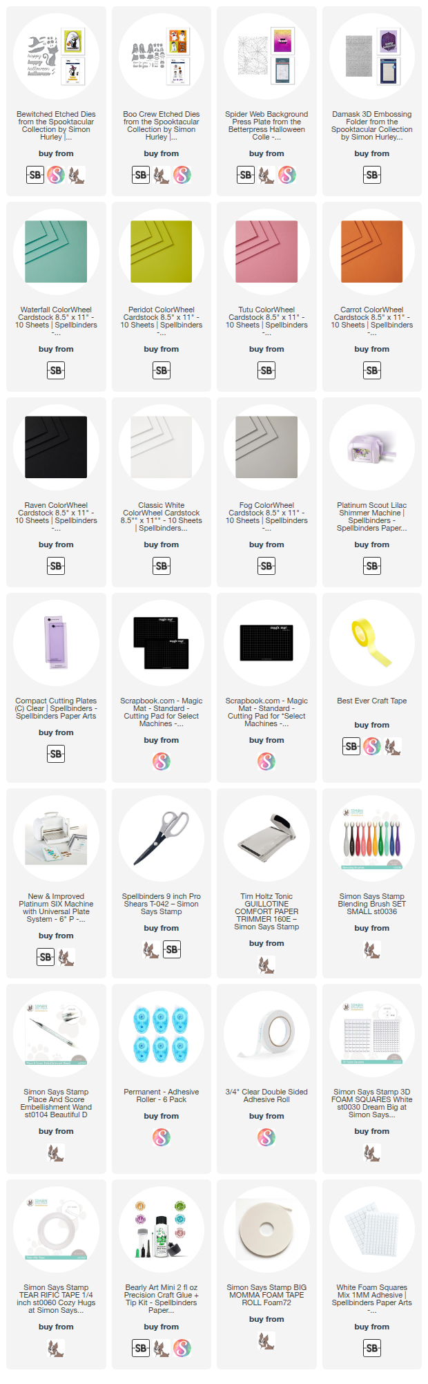 Products Used on today’s Spellbinders Boo Crew Halloween Cards.