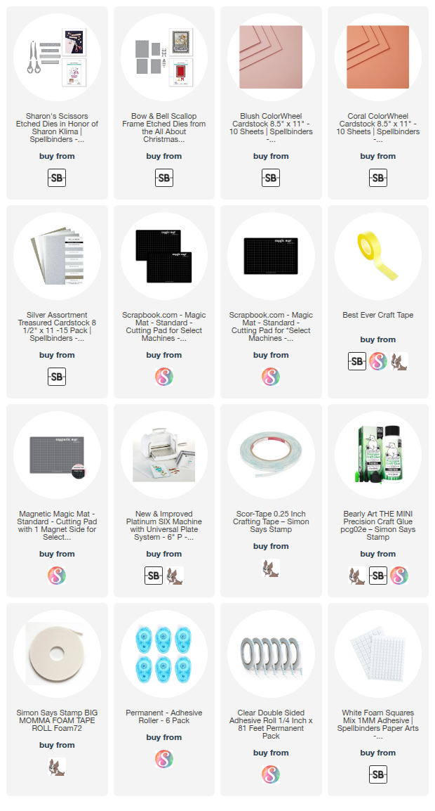 Clicking on a thumbnail link and shopping provides me with a small commission (at no additional cost to you), which supports my website and allows me to continue bringing you new projects and videos. I appreciate your support. Affiliate and product disclosures are found on my disclosure page. All products were personally purchased except for Spellbinders products, which were provided/sponsored by the company. I only use and recommend products I love. Click on the icons below each product picture to visit my favorite stores.