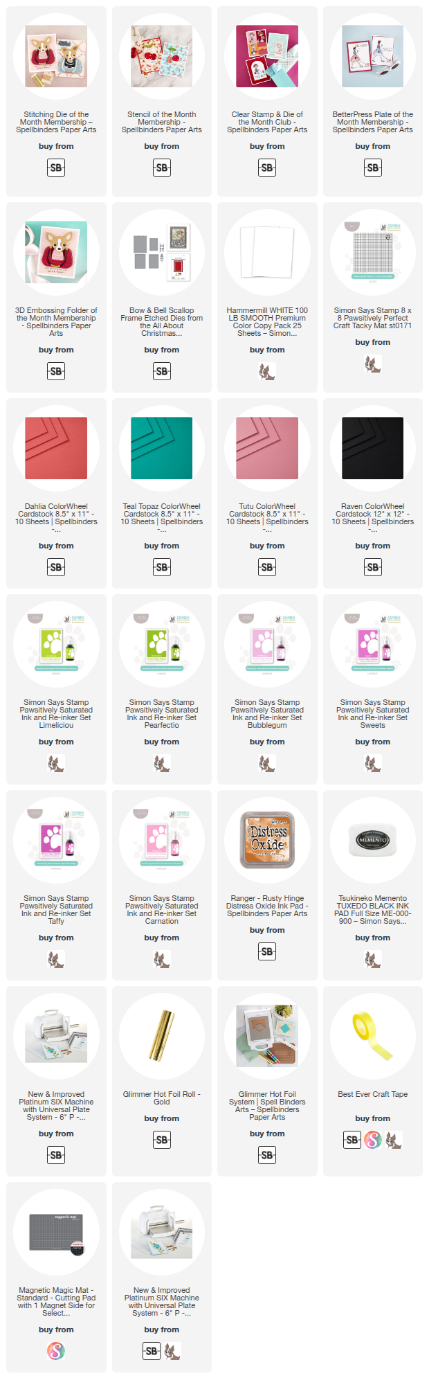Clicking on a thumbnail link and shopping provides me with a small commission (at no additional cost to you), which supports my website and allows me to continue bringing you new projects and videos. I appreciate your support. Affiliate and product disclosures are found on my disclosure page. All products were personally purchased except for Spellbinders Monthly Club Kits, which were provided/sponsored by the company. I only use and recommend products I love. Click on the icons below each product picture to visit my favorite stores.